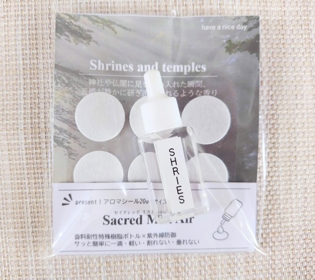 日本の香りシリーズ【セイクレッド ミストエアー (清浄の香)】各4.5ml[滴下専用ボトル入]+【今だけpresent】ピタッとアロマ20φ6枚つき