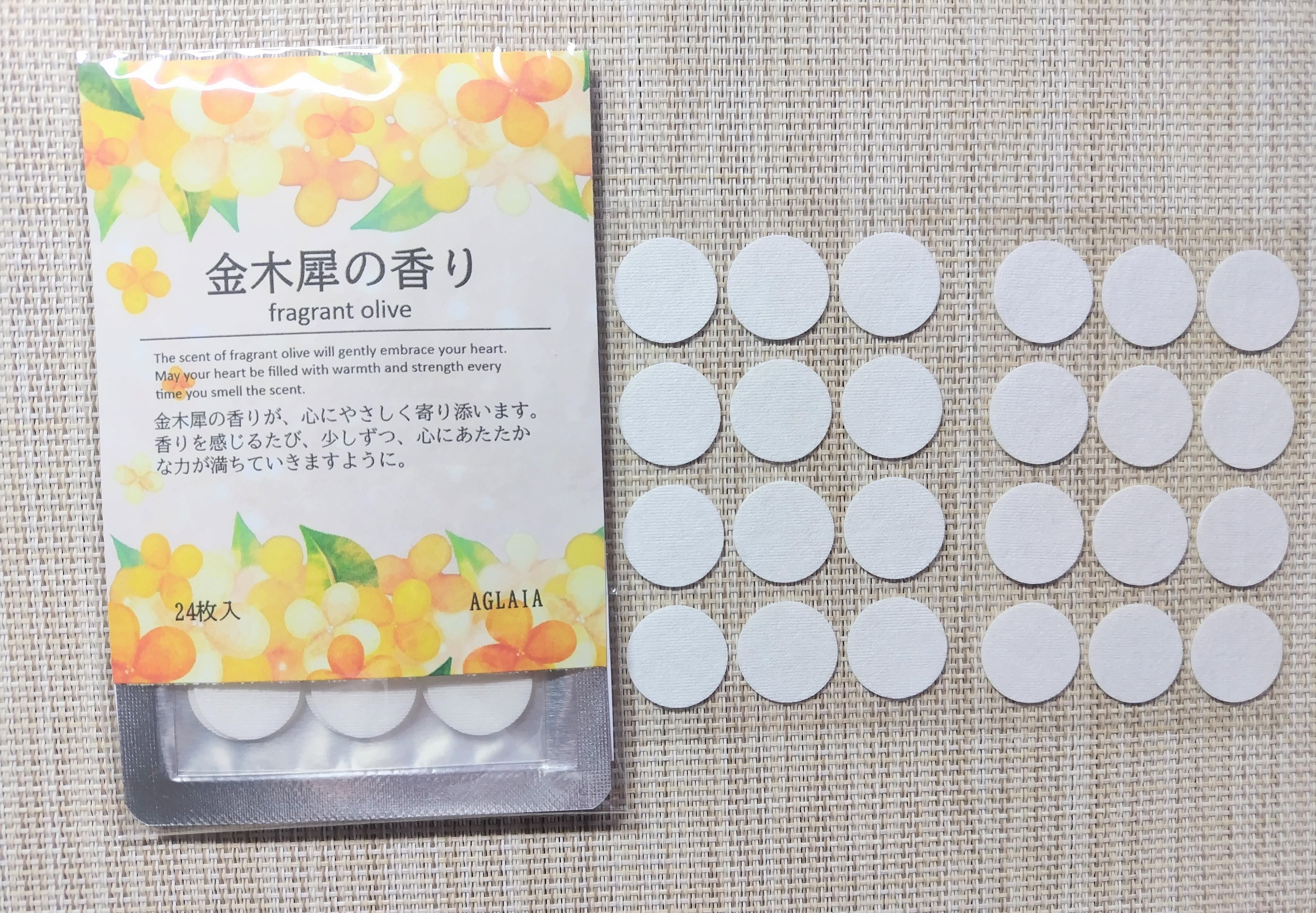 20φサイズの24枚入で、簡単に香りを楽しむことができます。秋の訪れを感じながら、心にゆとりを持たせるひとときをお過ごしください。*特に落ち込んでいる方、日々しんどい方、癒やされたい方・・などなど使ってみてください。金木犀の香りアロマシールが心に満ちてきます